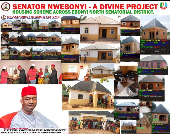 …Inauguration of the 78th three-bedroom deluxe bungalows for a widow- Mrs Grace Ogwa Elom at Ekwashi Ngbo in Ohaukwu local government area of Ebonyi state on January 4, 2024 whereas the number currently is above 100 bungalows.